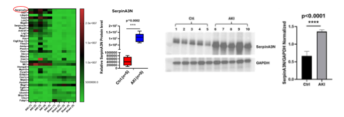 SerpinA3N protein expression was significantly upregulated in the heart for AKI tissues compared to the control group as identified by LC-MS.