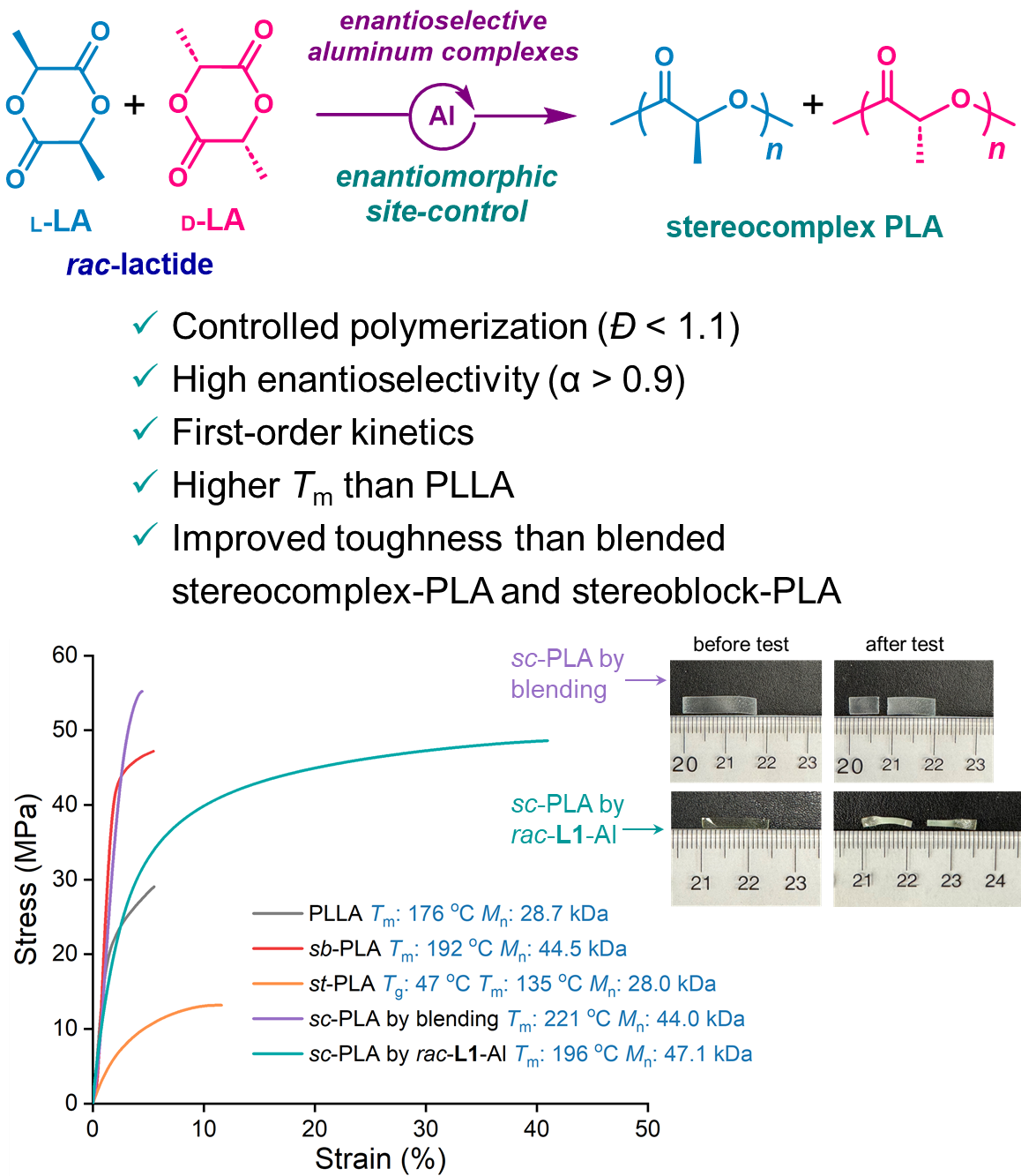 The major challenge in commercializing high-performance polylactic acid (PLA) lies in bridging the gap between cost-effective production and premium material properties. While PLA is a biodegradable and sustainable alternative to petroleum-based plastics, its basic form is too brittle and heat-sensitive for many industrial applications. The enhanced version known as stereocomplex PLA (sc-PLA) offers superior strength and thermal resistance, making it suitable for demanding uses like automotive parts and medical devices. However, producing sc-PLA typically requires expensive enantiopure monomers and complex manufacturing steps that drive up costs and limit scalability. Attempts to simplify the process using racemic lactide, a cheaper and more readily available raw material, have been technically limited by current catalysts that cannot consistently control the polymer structure at high efficiency. As a result, businesses face a trade-off between affordability and performance, with no current one-step process that can reliably deliver high-quality sc-PLA from inexpensive starting materials.