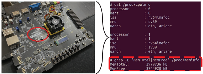 Figure: Full-system prototype on a Genesys 2 Kintex-7™ FPGA. Linux boots up with two cores and 3979736 KB – 4X the 1GB DRAM on board (prototype: https://youtu.be/-1JG3JnIY3U).