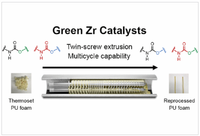 SHORT DESCRIPTION This method reprocesses crosslinked polyester polyurethane using green zirconium-based catalysts. It lowers environmental and health risks while supporting various molding processes. BACKGROUND Conventional reprocessing methods for thermoset polyester polyurethane rely on toxic catalysts and energy-intensive processes. These approaches often use harmful organotin compounds and inefficient techniques, leaving a clear need for safer, sustainable alternatives. ABSTRACT The invention employs green zirconium-based catalysts to reprocess crosslinked polyester polyurethane. It effectively converts both model and commercial materials using processes such as compression molding, twin-screw extrusion, and injection molding. The method supports up to four processing cycles without residual toxicity. Cryogenic milling enables precise catalyst integration and eliminates the need for solvents. These outcomes demonstrate a viable, environmentally friendly solution for PU recycling.