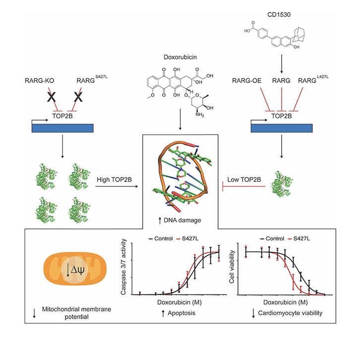 This technology arises from a key discovery that identified common variants in RARG that leaves patients more susceptible to doxorubicin-induced cardiotoxicity. Thus, selective retinoic acid receptor agonists that activate RARG signaling were found to protect cardiomyocytes from doxorubicin-induced toxicity. In vitro, treatment with the RARG agonists increased the half-maximal lethal dose of doxorubicin by approximately 7-fold. In vivo, co-administration of RARG agonists with doxorubicin maintained significantly higher cardiac function in mice compared with vehicle controls. Importantly, the treatment did not compromise doxorubicin’s anticancer efficacy and even enhanced its effects in certain breast cancer cell lines.