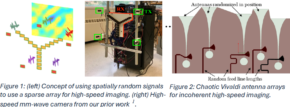 This technology introduces a novel approach using space-time chaotic antenna arrays, where antenna elements are intentionally randomized in both their spatial placement and signal excitation. This controlled randomness creates spatial and temporal incoherence, enabling accurate image reconstruction without requiring strict synchronization or dense array configurations. By leveraging this principle, the system can achieve high-resolution imaging with significantly fewer antennas, reducing hardware complexity and cost. Additionally, the approach enables faster data acquisition and real-time imaging capabilities while maintaining strong performance in challenging environments. Overall, this innovation transforms millimeter-wave imaging into a more efficient, scalable, and practical solution for real-world applications.