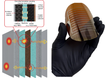 Rutgers researchers developed a flexible oxide thin-film thermal sensor that enables real-time hotspot detection in the entire battery cell volume with <1 mm resolution and <2 s response time. The sensor provides up to 10× improvement over existing technologies while requiring only two electrical connections significantly reducing readout complexity, offering a scalable solution for safer batteries, fast charging, and next-generation energy storage systems.