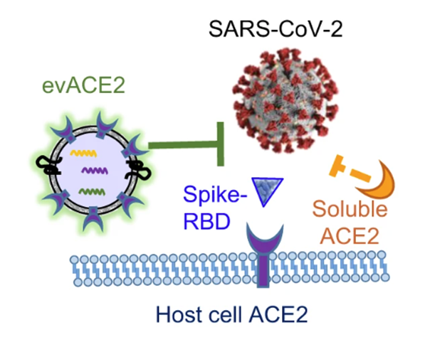 Northwestern researchers engineered exosomes expressing ACE2+ or viral antigen-specific IgGs from human cell lines to act as a decoy for SARS-CoV-2 by binding its spike protein RBD. Exosomesachieved viral neutralization using far fewer molecules compared to soluble ACE2. The technology maintains the native transmembrane conformation of ACE2, extends plasma half-life, and supports loading with antiviral agents like remdesivir. This decoy therapy may address a range of coronaviruses that utilize ACE2 for cell entry. DEVELOPMENT STAGE