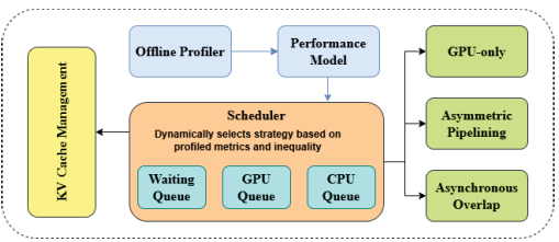 Deploying large language models efficiently has become a major business obstacle as GPU memory limitations increasingly drive-up infrastructure costs and restrict scalability. During inference, the rapid growth of the key value cache consumes GPU memory quickly, limiting batch sizes and output lengths and reducing overall system throughput. While hybrid CPU GPU approaches attempt to offset this by leveraging abundant CPU memory, they often introduce significant performance penalties due to data transfer overheads, redundant linear layer computations, and imbalanced processor utilization. For organizations, this translates into slower response times, underused hardware, and the need for costly hardware upgrades or model downsizing to maintain service quality. The absence of adaptive solutions that can dynamically balance workloads across heterogeneous hardware further exacerbates these inefficiencies, making it difficult to deploy large, high-quality models in a cost effective and predictable manner on commodity or legacy systems.